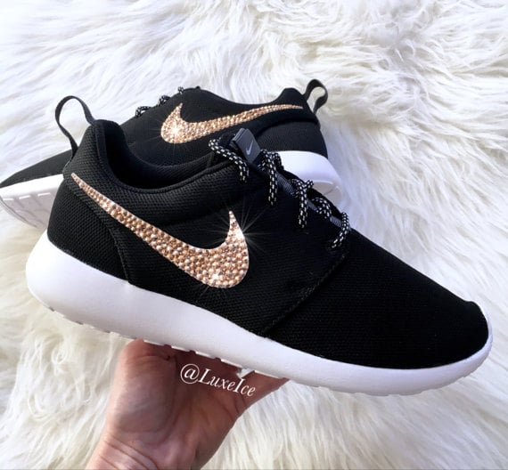 Home / Nike / Nike Roshe Run Black/White customized with Rose Gold SWAROVSKI Xirius Rose-Cut Crystals.